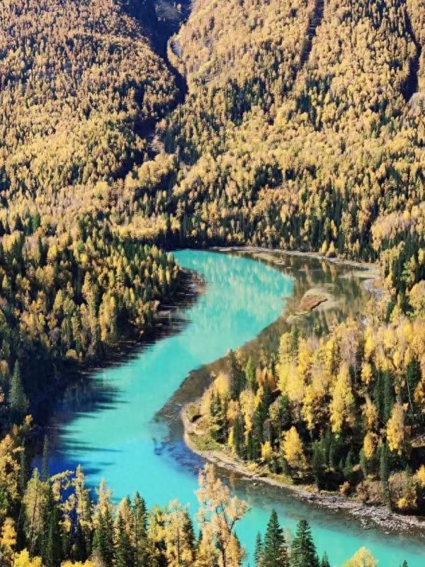 作为中国最深的冰川堰塞湖,喀纳斯的秋天是大自然最慷慨的馈赠。十月的湖畔,白桦林披上金装,雪峰初白倒映水中,湖水随光线变幻出深蓝、灰绿、乳白等多种色泽,堪称“一汪会呼吸的湖”。顺着喀纳斯河向上游漫步,泰加林间的落叶松与杨树织就五彩林海,与阿尔卑斯山景致别无二致。清晨时分,雾气在湖面弥漫,阳光穿透林隙洒下金色光斑,随手一拍便是壁纸级画面。