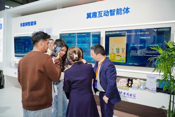 在文创领域,天翼物联打造翼趣互动智能体,搭配自研基于RISC-V架构云芯AI模组的翼趣互动公板,集成大模型能力、多模态语音交互能力,为IP玩具提供智能对话解决方案。展会现场,全运会AI吉祥物“喜洋洋·乐融融”和首款故宫猫福墩AI玩偶深受观众喜爱,它们与观众之间的趣味问答和暖心回应,生动诠释科技为传统文化IP带来的全新魅力。