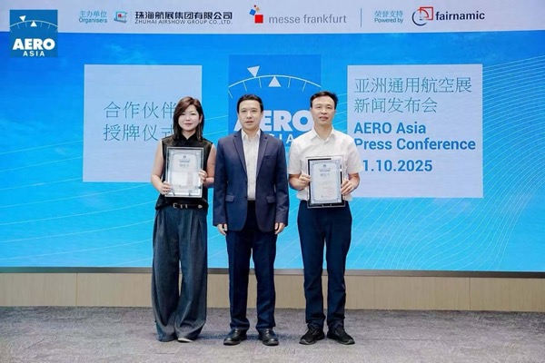 近日,2025亚洲通用航空展新闻发布会在珠海召开。中国电信珠海分公司党委书记、总经理李圣祥受邀参加。中航通用飞机有限责任公司、珠海市国资委、珠海市航展局、珠海市会展局、珠海市科技创新局、珠海格力集团有限公司、法兰克福展览(香港)有限公司、珠海航展集团有限公司等领导及参展商、合作商代表和新闻媒体参加活动。会上,珠海航展集团授予中国电信股份珠海分公司“2025 亚洲通用航空展特约信息服务商”称号。