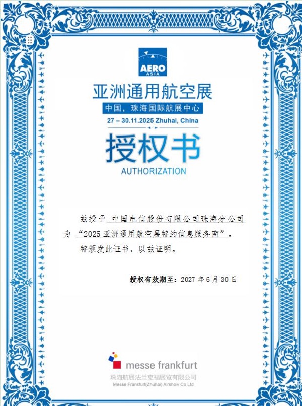 中国电信珠海分公司将聚焦场馆,开展包括融合通感网络、AI等科技创新技术应用,始终秉承“用心服务、用户至上”的理念,尽心竭力提供丰富、体贴、周到的综合信息服务保障,用温暖的微笑和用心的服务,延续过往在蓝天盛会中的优质服务口碑,进一步在参展来宾心中夯实专业、可靠的电信品牌形象,为2025亚洲通用航空展的成功举办贡献电信力量。