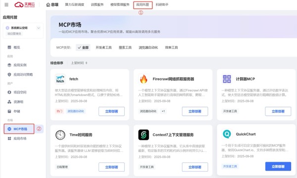 MCP市场一键部署;
